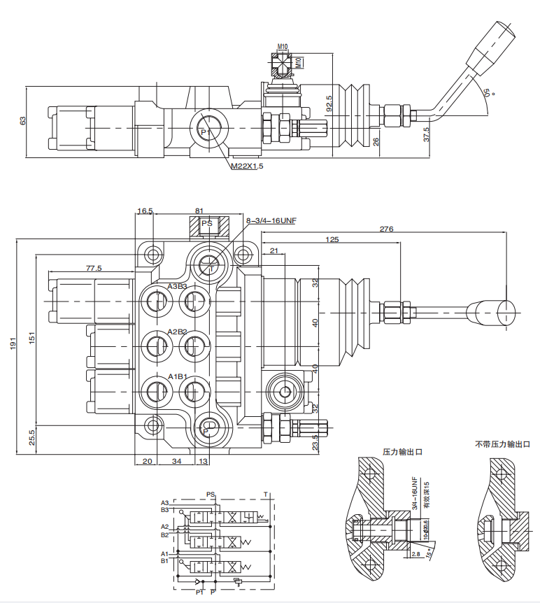 HM65多路換向閥是我單位自主設計開發(fā)的一種中高壓整體式多路換向閥??砂纯蛻粢笤陂y上設溢流閥、單向閥、補油閥等。溢流閥可調節(jié)系統(tǒng)壓力,單向閥防止油液倒流,換向閥滑閥機能有A、0、Y、P等,可任意組合。換向手柄有兩種安裝形式,便于不同方向的操作。該閥采用并聯(lián)油路,設計有壓力輸出口與其它液壓元件相接提供動力源。經過特殊設計的密封方式,使閥的密封性能好。該閥廣泛用子叉車、環(huán)衛(wèi)車輛、小型裝載機等工程機械的液壓系統(tǒng)。